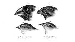 Darwin’s finches or Galapagos finches. Darwin, 1845. Journal of researches into the natural history and geology of the countries visited during the voyage of H.M.S. Beagle round the world, under the Command of Capt. Fitz Roy, R.N. 2d edition.Public Domain