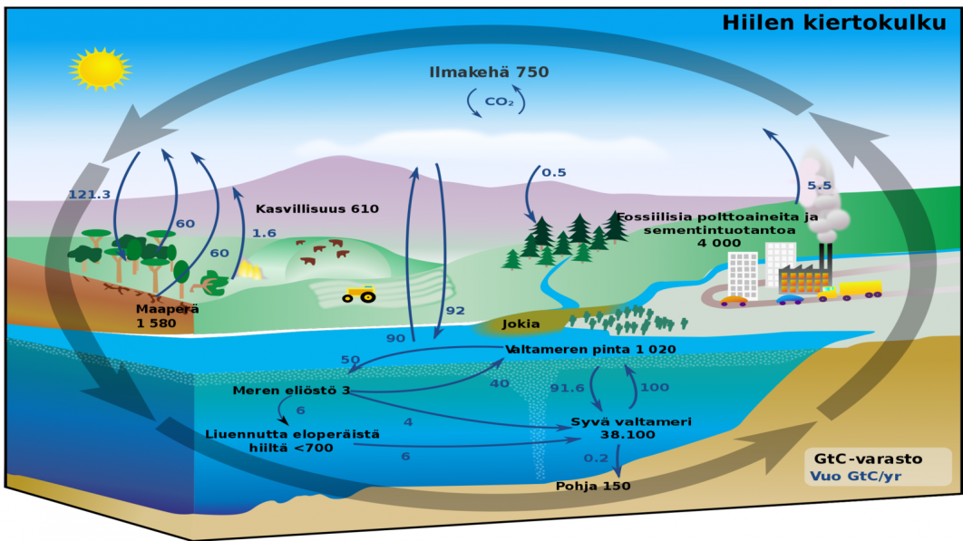 By Carbon_cycle-cute_diagram.svg: * Carbon_cycle-cute_diagram.jpeg: User Kevin Saff on en.wikipedia Derivative work: FischX derivative work: Olli (Carbon_cycle-cute_diagram.svg) [Public domain], via Wikimedia Commons