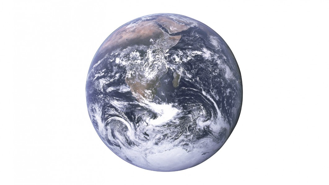 By NASA [Public domain], via Wikimedia Commons; “The Blue Marble” is a famous photograph of the Earth taken on December 7, 1972 by the crew of the Apollo 17 spacecraft en route to the Moon at a distance of about 29,000 kilometers (18,000 statute miles). It shows Africa, Antarctica, and the Arabian Peninsula.