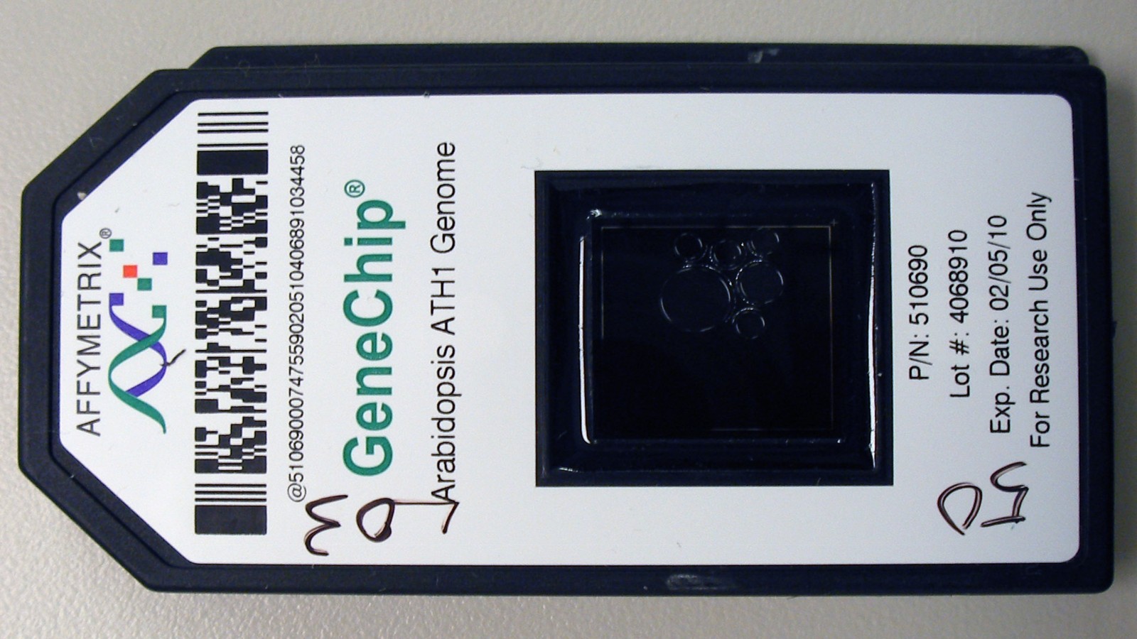 Affymetrix ATH1 GeneChip, Arabidopsis thaliana array; By Sarahgilmour (Own work) [Public domain], via Wikimedia Commons