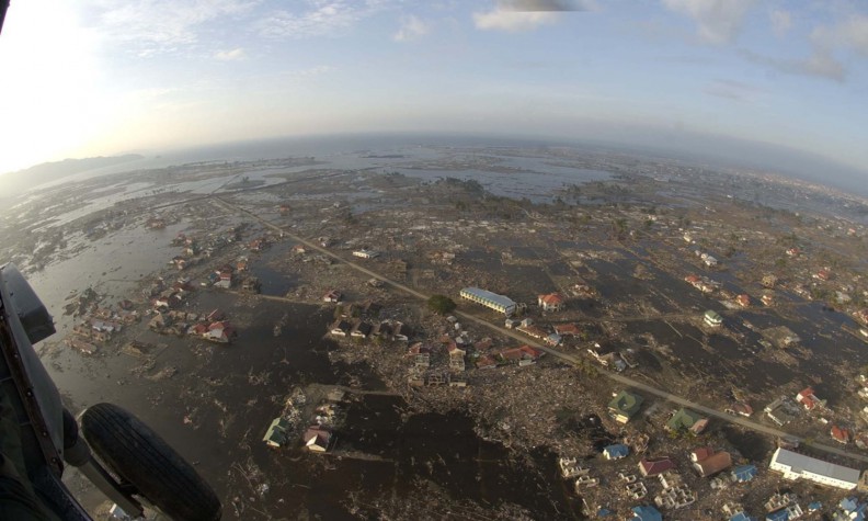 Indonesia (Jan. 19, 2005) – Aerial view of Banda Aceh, Sumatra, three weeks after a Tsunami devastated the coastal region; By U.S. Navy photo by Photographer’s Mate 1st Class John D. Yoder [Public domain], via Wikimedia Commons