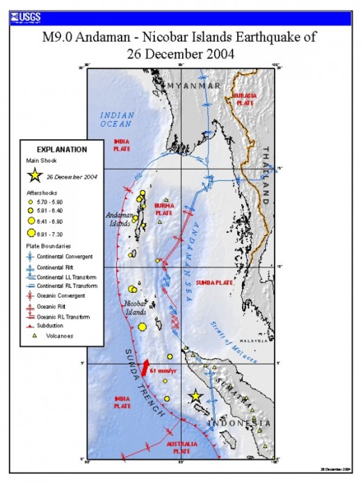26.12.2004 klo 00.58.53 (UTC) Sumatran saaren pohjoispään länsipuolella paikassa 3,3 °N, 95,8 ° E, merenpohjan alla 30 km:n syvyydessä tapahtui voimakkuudeltaa 9 richterin maanjäristys, jonka aiheuttamat hyökyaallot – tsunamit aiheuttivat ihmiskunnan historian suurimpiin kuuluvan luonnonkatastrofin.